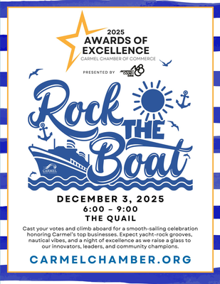 The Carmel Chamber of Commerce cordially invites you to set sail for the 2025 Awards of Excellence — Rock the Boat.