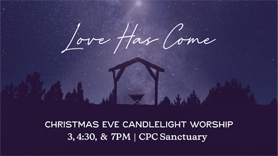 You're invited to join us for beautiful music and a Christmas message at one of our three Candlelight Christmas Eve services on Wednesday, December 24 at 3:00, 4:30 and 7:00PM.
