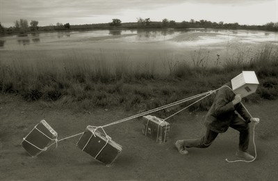 This much-anticipated and long-awaited exhibition of the 2024 Critical Mass Solo Show Award Winner, Melanie Walker, is being presented in collaboration with PhotoLucida, a wonderful photography non-profit located in Portland, Oregon. We’re thrilled to be exhibiting an innovative and exciting installation by this internationally recognized artist! Her ongoing allegorical project, Nomadic Dreamer: a modern myth of shelter and passage, explores how we carry our histories, emotional landscapes, and social environments with us — sometimes literally on our shoulders. Houses for heads? Why not? Puppets hanging from the ceiling? Why not? Veils to walk through like a maze? Why not?
