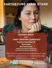 Chef Christina Lonewolf will demonstrate how to make sweet blue corn scones and a pumpkin atole using Earthbound Farm pumpkins.
