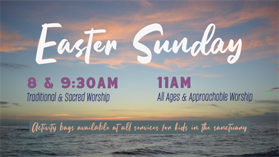 You're invited to join us at one of our Easter Sunday Services at Carmel Presbyterian Church on April 5! Services are at 8:00, 9:30 & 11:00AM. Then join kids are invited to join us at 12:00PM for our Easter Egg Hunt on the patio!