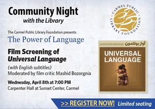 Film Screening of “Universal Language” moderated by film critic Mashid Bozorgnia