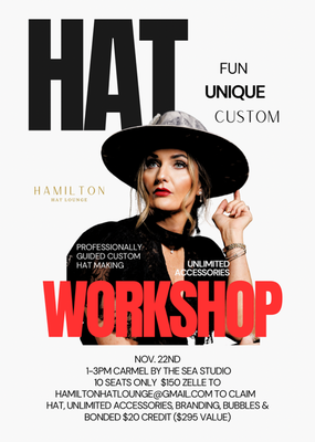 Our Hamilton Hat Workshops offer a creative, hands-on experience where guests design and personalize their own custom hats. Each workshop includes premium materials, expert guidance, and unique embellishments to make every hat one of a kind. It’s a fun, stylish gathering perfect for friends, events, or a little self-expression. And the connection with the community, with those in the room, is like no other!