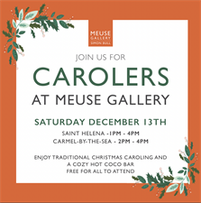 Meuse Gallery invites art lovers and holiday enthusiasts to our Fourth Annual Carolers & Hot Cocoa. Join us on Saturday, December 13th, from 2:00 PM to 4:00 PM, for an afternoon filled with holiday music and seasonal treats, all while being surrounded by a winter wonderland of art created by internationally acclaimed artist Simon Bull.