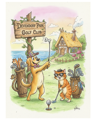 There may be no ocean or sand traps guarding our fairways, but you might get saddle-sore giddy-upping to the barn on our “Happy Tails to You Cattle Dog” hole. And serious golfers might just learn the secret to becoming a “scratch” player on our “What’s New Pussycat?” hole.