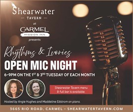 Join us in Shearwater Tavern for Rhythms & Ivories open mic night on the first and third Tuesday of each month! Hosted by Angie Hughes with Maddeline Edstrom on piano. Full menu and full bar available.